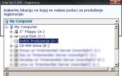 Ukoliko se javi greška pri produženju registracije, kopirajte fajl sa CD-a na vaš hard disk (npr - C:\) i iz padajućeg menija navedite lokaciju gde se fajl nalazi (ponovite korak 3.)